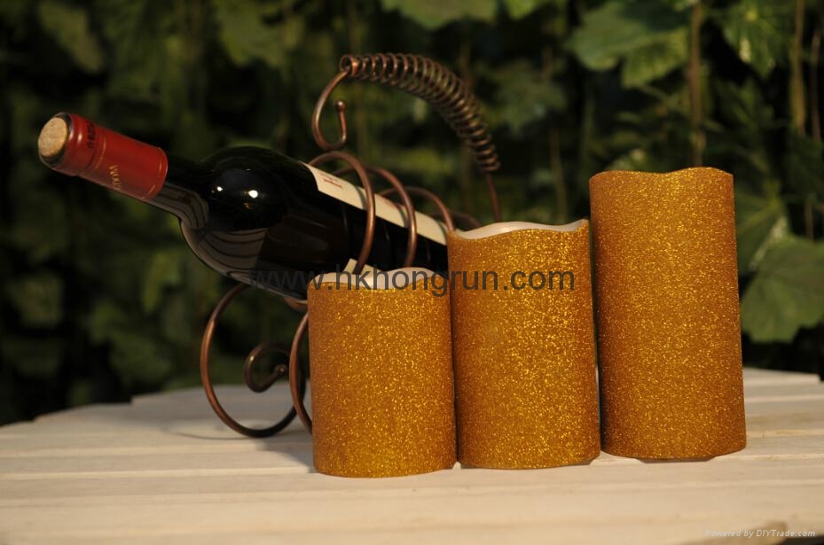 Set of 3 real wax LED candle in glitter surface,can make in different functions: